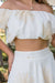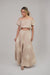 • Este conjunto tiene detalles artesanales que elevan tu estilo. Su top off-shoulder aporta una aire romántico y su falda tipo maxi tiene una caída elegante y movimiento fluido.