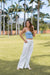 • Pantalón en Lino, fresco y elegante que estiliza la figura. Con botones frontales y elástico en la parte posterior.