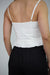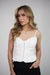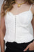 • Top tipo corsé con cierre frontal que realza la figura y define la cintura gracias a su silueta en V. Sus tiras delicadas y golas suaves sobre el busto le dan un toque romántico.