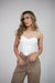 • Corsé moderno strapless con estructura visible que estiliza la cintura y realza la figura para un look sofisticado que eleva cualquier outfit.